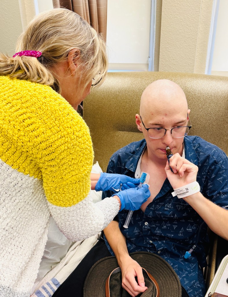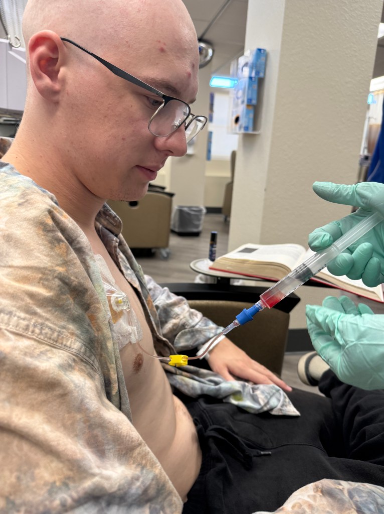 Day 3 started better than the first two days of Jadan’s treatment week. We were a little slow getting ready due to fatigue, but his nausea felt more under control. Jadan has been doing a great job taking his anti-nausea meds before treatment. This seems helpful, along with additional approaches to help with the side effects of the chemo meds.